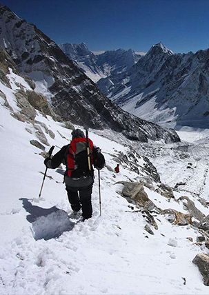 Pachermo Peak (6,187m) straddles the Khumbu and Rolwaling valleys, giving climbers an unparalleled panoramic view of two great Himalayan regions
